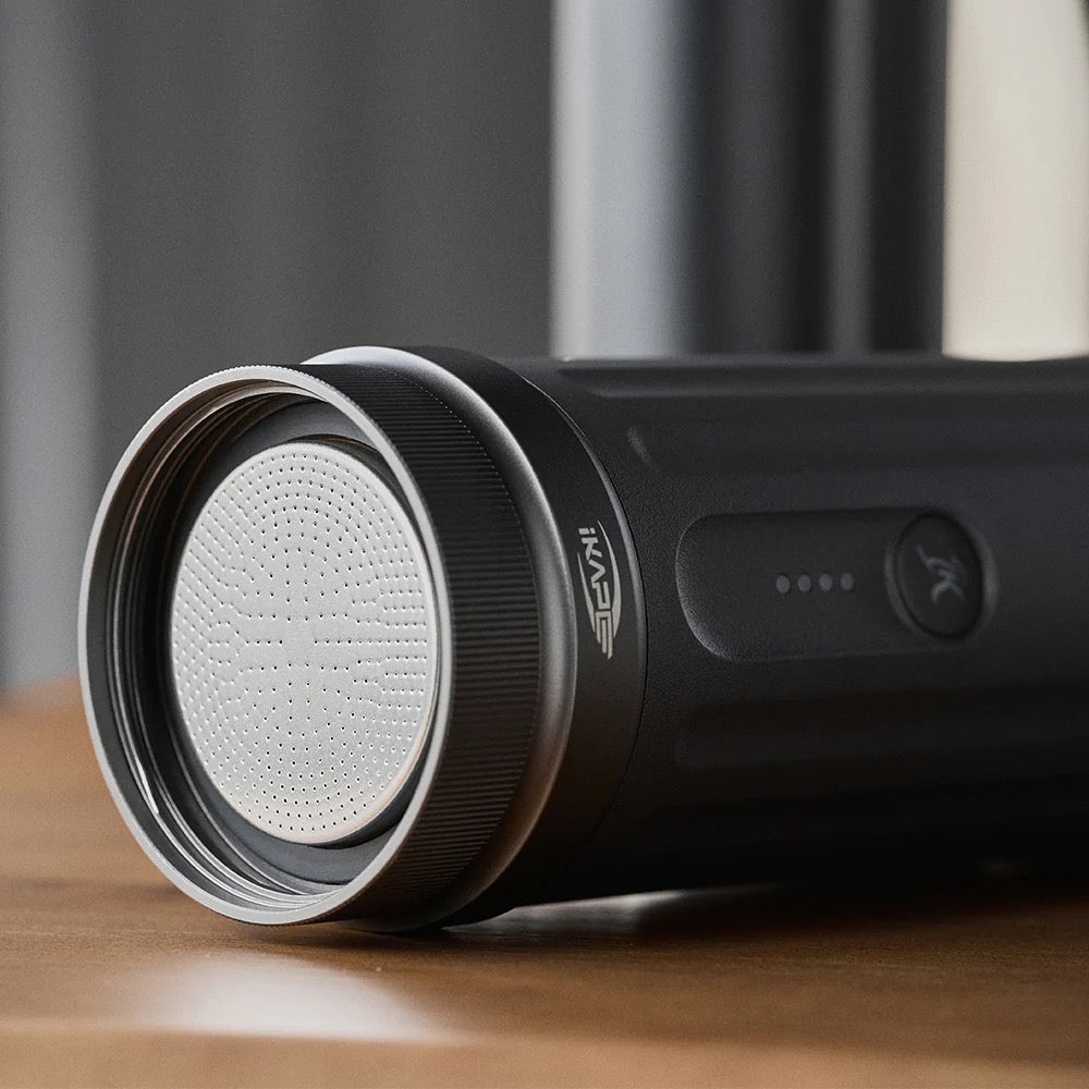 The IKAPE team innovatively designed the Kapo K2 electric portable coffee maker with a 51mm brewing head. Its evenly distributed mesh filter ensures hot water flows uniformly over the coffee grounds. Paired with a bottomless portafilter, you can observe the extraction process of your espresso. The removable portafilter allows you to swap out different baskets according to your preferences, just like those in a semi-automatic coffee machine. This adds versatility, making it feel like a home semi-automatic coffee machine.